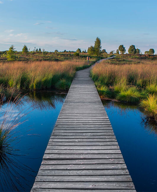 Unabhängig von der Jahreszeit fasziniert das Hochmoor durch seine vielfältigen Pflanzenarten. Farbenprächtig zeigt es sich im Frühling und Sommer, während im Winter die knorrigen Birken mit ihren bizarr anmutenden Silhouetten eine schaurig schöne Atmosphäre erzeugen. Zahlreiche ausgewiesene Wanderrouten – teils auf festen Naturpfaden, teils auf Holzstegen – führen durch diese einmalige Naturlandschaft.